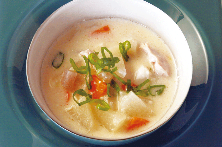 酒粕を使い発酵食品の旨みをプラス。味噌が少なめでも味わいのある温かい一品です。